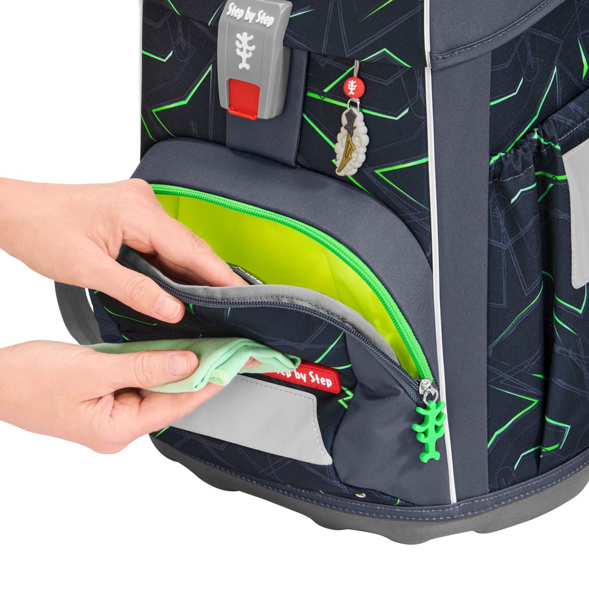 Dank der schlanken und hohen Form fasst er 23 Liter und ist somit der perfekte Begleiter von der 1. bis zur 4. Klasse. Dies wird durch das EASY GROW SYSTEM gewährleistet, durch welches der Schulrucksack höhenverstellbar wird und sich an die jeweilige Größe Deines Kindes anpassen lässt. Die wechselbaren Motive sorgen dafür, dass der Schulrucksack Deinem Kind über die gesamte Grundschulzeit hinweg gefällt.